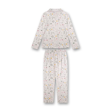 Пижама Sanetta – это идеальный выбор для девочек! Изготовленная из 50% хлопка и 50% модала, она украшена нежным цветочным принтом. Мягкая и дышащая ткань обеспечивает комфортную посадку. На фотографиях видна аккуратная резинка на рукавах и поясах, а также нежные цветы разной формы и оттенка на молочном фоне. Качество от бренда Sanetta делает эту пижаму отличным выбором для вашего ребенка!