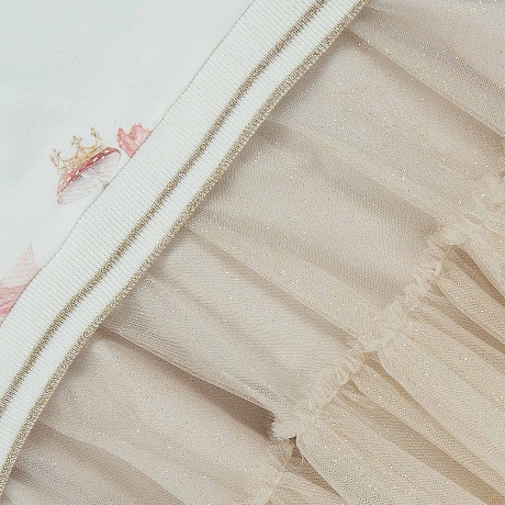 Платье Lapin House для девочек молочного цвета с принтом Once upon a time – это идеальный выбор для маленьких модниц! Изготовлено из высококачественного материала с подкладкой 100% хлопок. Модель украшена нежным принтом с изображением замка, звезд и цветов. Материал платья обеспечивает комфортную посадку, а подкладка из хлопка делает его особенно мягким и приятным на ощупь. На фотографиях видна аккуратная отделка и качественные швы. Качество от бренда Lapin House, основанного в Греции.