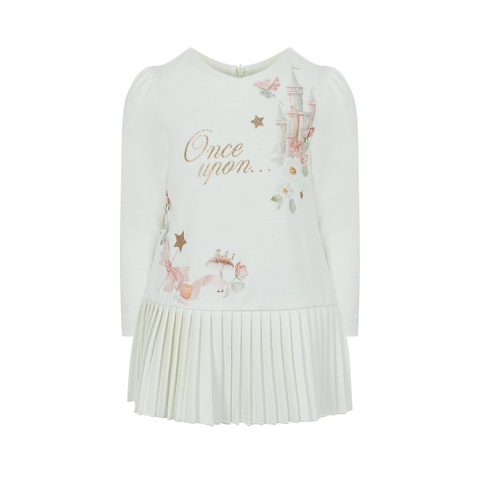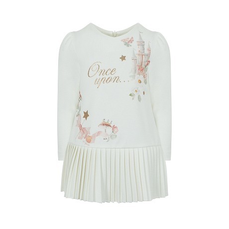 Молочное платье Lapin House – это идеальный выбор для маленьких модниц! Изготовленное из вискозы и лайкры, оно украшено очаровательным принтом Once upon a time. Милые звездочки, розовые цветы и маленькие замки создают нежное и волшебное настроение. На фотографиях видна аккуратная молочная основа с яркими розовыми и золотыми акцентами. Качество от бренда из Греции и внимание к деталям делают это платье отличным выбором для вашего ребенка!