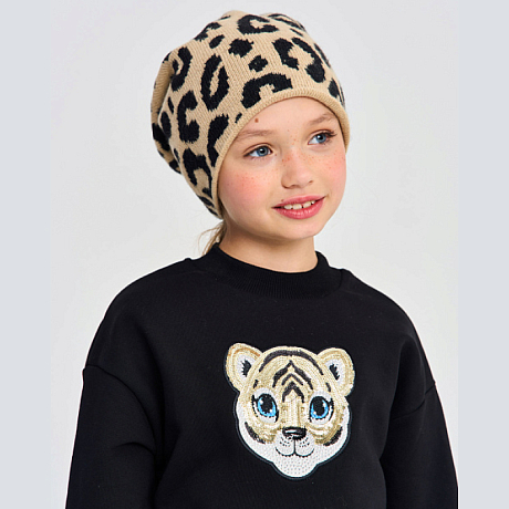 Шапка Chobi – это идеальный выбор для вашего ребенка! Изготовлена из эластичной шерсти, вискозы и переработанного полиамида. На фотографиях видна яркая леопардовая текстура с черными пятнами на бежевом фоне. Шапка дополнена черной окантовкой по краю, что делает ее еще более стильной и комфортной. Нежная шерсть обеспечивает мягкость и тепло для нежной кожи вашего ребенка.