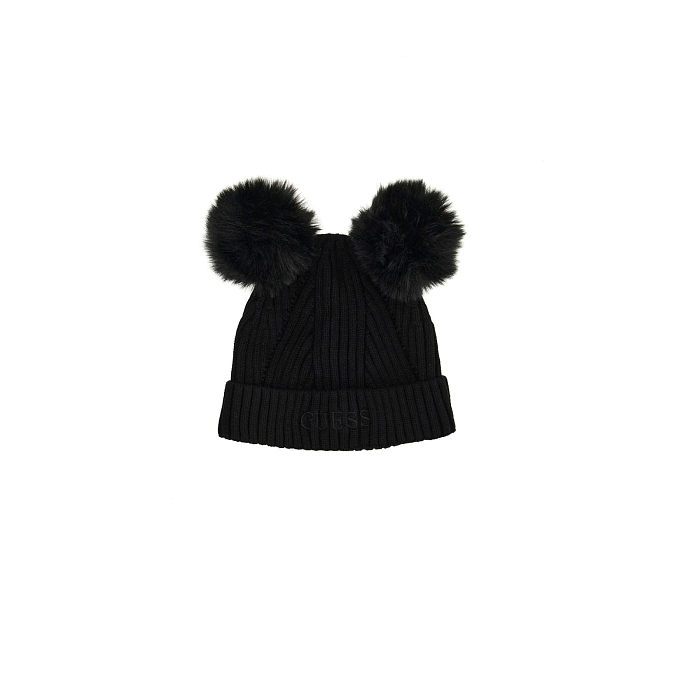 Черная шапка для девочек Guess с двумя помпонами - доставка СДЭК по всей России - J3BZ04Z2QP0-JBLK/М/25-02