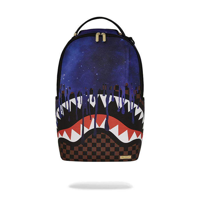 Рюкзак Sprayground – это идеальный выбор для мужчин! Изготовлен из 100% поливинилхлорида, он украшен ярким принтом акулы с градиентом цветов, от синего до фиолетового. На передней части видна большая открытая пасть акулы с белыми зубами, красными и белыми точками и черными квадратами. Нежная текстура ткани и удобная ручка делают этот рюкзак отличным выбором для вашего образа!