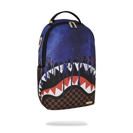 Рюкзак Sprayground – это идеальный выбор для мужчин! Изготовлен из 100% поливинилхлорида, он украшен ярким принтом акулы с градиентом цветов, от синего до фиолетового. На передней части видна большая открытая пасть акулы с белыми зубами, красными и белыми точками и черными квадратами. Нежная текстура ткани и удобная ручка делают этот рюкзак отличным выбором для вашего образа!