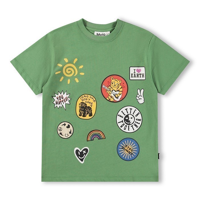 Футболка Molo зеленого цвета – это идеальный выбор для мальчиков! Изготовленная из 100% натурального хлопка, она украшена яркими принтами и надписями в стиле "I love Earth", "You Matter", "Long Hair Don't Care" и другими. Зеленый цвет создает ощущение свежести и позитива, а принты придают футболке уникальный стиль и яркость. Качество от бренда из Дании делает эту футболку отличным выбором для вашего ребенка! Быстрая доставка СДЭК по всей России.