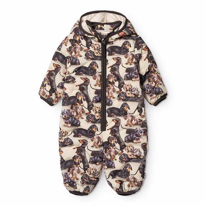 Комбинезон Molo – это идеальный выбор для мальчиков! Изготовлен из 100% полиэстера переработанного, он украшен очаровательными изображениями собак на светлой основе. Нежная ткань обеспечивает комфортную посадку и идеальную подгонку. На фотографиях видна аккуратная черная окантовка по краю и удобная застежка-молния. Качество от датского бренда Molo делает этот комбинезон отличным выбором для вашего малыша!