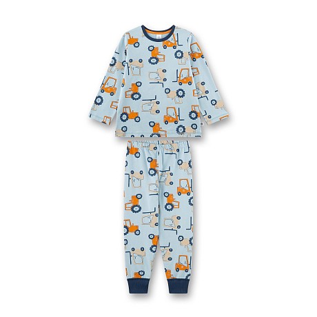 Серо-голубая пижама с принтом тракторов для мальчиков