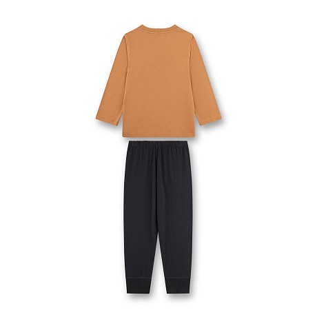 Пижама Sanetta – это идеальный выбор для маленьких мальчиков! Изготовленная из 100% хлопка, она украшена очаровательным принтом с милым лисом. На футболке изображены слова "oh so very quick" и рисунок лисы, а на штанах – простые манжеты. Нежная коричневая основа с ярким принтом создает приятное и уютное настроение. На фотографиях видна аккуратная коричневая окантовка по краю и мягкая текстура ткани. Качество от бренда Sanetta делает эту пижаму отличным выбором для вашего ребенка!
