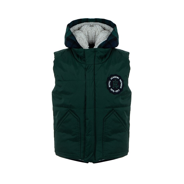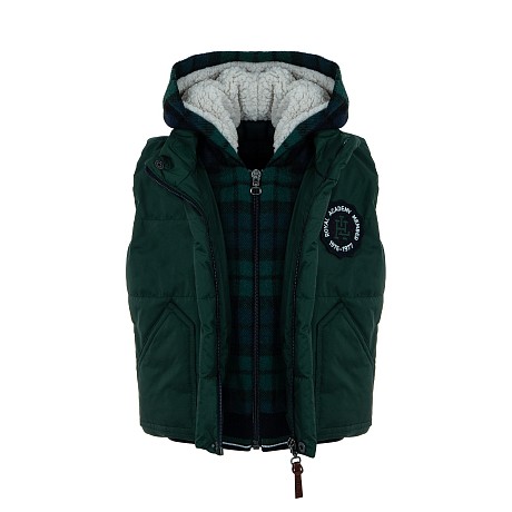 Темно-зеленый утепленный жилет Lapin House – идеальный выбор для мальчиков! Изготовлен из высококачественного материала: 40% полиамид, 36% полиэстер и 24% полиуретановая нить. Подкладка выполнена из хлопка и эластичной лайкры, что обеспечивает комфортную посадку. Жилет украшен эмблемой Lapin House и дополнен удобной капюшоном. На фотографиях видна аккуратная окантовка по краю и мягкая текстура ткани. Качество от бренда из Греции и внимание к деталям делают этот жилет отличным выбором для вашего ребенка!