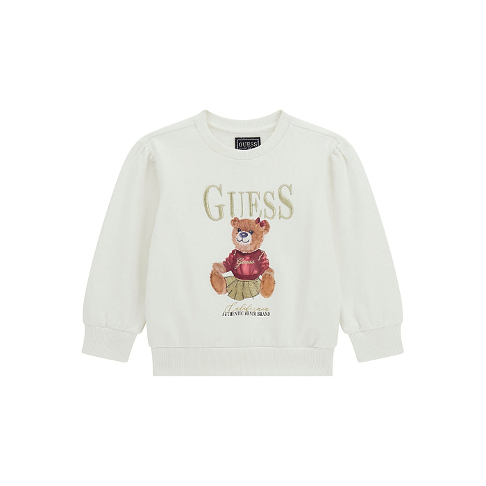 Джемпер Guess – это идеальный выбор для девочек! Изготовленный из 100% хлопка, он украшен очаровательным принтом медведя в красной куртке и шарфике. Белая основа с яркими красными акцентами создает игривое и в то же время успокаивающее настроение. На фотографиях видна аккуратная красная контрастная окантовка по краю и мягкая текстура ткани. Качество от американского бренда Guess делает этот джемпер отличным выбором для вашего ребенка!