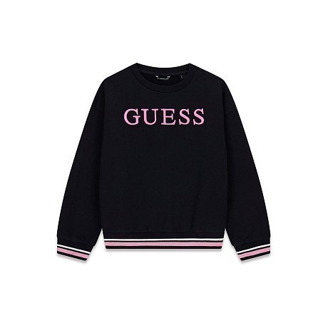 Джемпер Guess – это идеальный выбор для маленьких модниц! Изготовленный из 100% хлопка, он украшен крупным розовым логотипом Guess и контрастными полосками на рукавах. Лаконичный черный цвет с яркими розовыми и белыми полосками делает эту вещь не только функциональной, но и очень модной. На фотографиях видна аккуратная розовая контрастная окантовка по краю рукавов и мягкая текстура ткани. Качество от американского бренда Guess обеспечивает комфорт и долговечность.