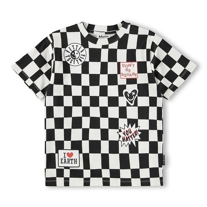 Черная футболка Molo с клетчатым принтом и надписями для мальчиков - 1S26A213-9548/М/26-01 - купить в LapinLand.ru