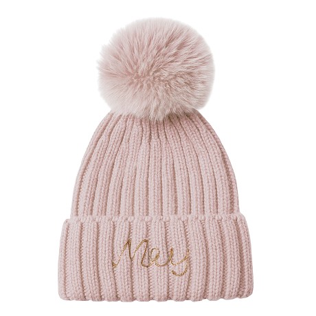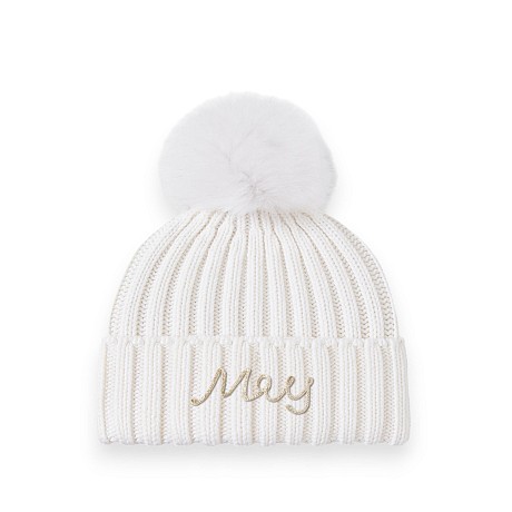 Шапка для девочек с шарфом и помпоном белая, бледно-розовая