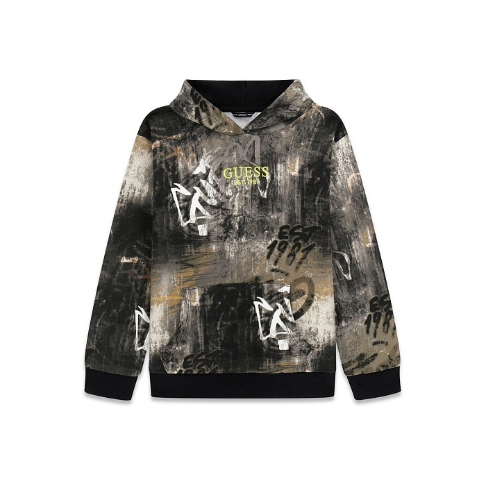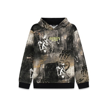 Толстовка Guess – это идеальный выбор для мальчиков! Изготовленная из 100% хлопка, она украшена стильным граффити-дизайном с черными и белыми надписями. Нежная текстура ткани обеспечивает комфортное ношение, а эластичные манжеты и подкладка из хлопка делают эту толстовку идеальной для холодной погоды. На фотографиях видна аккуратная черная окантовка по краю и мягкая текстура ткани. Качество от американского бренда Guess подчеркивает премиум-класс и внимание к деталям.
