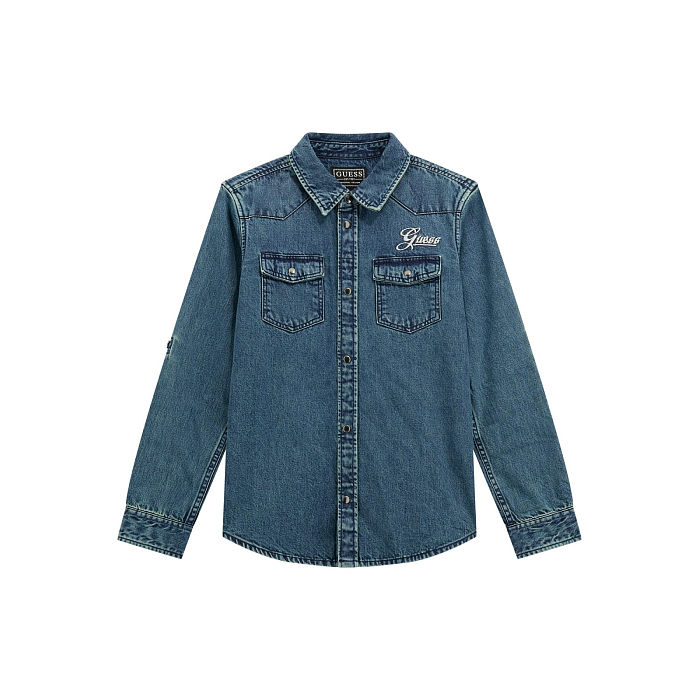 Синяя джинсовая рубашка Guess для мальчиков - доставка СДЭК по всей России - L5BH01D4EU0-DEEB/М/25-02