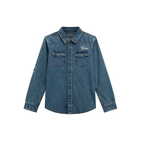 Синяя джинсовая рубашка Guess для мальчиков - доставка СДЭК по всей России - L5BH01D4EU0-DEEB/М/25-02