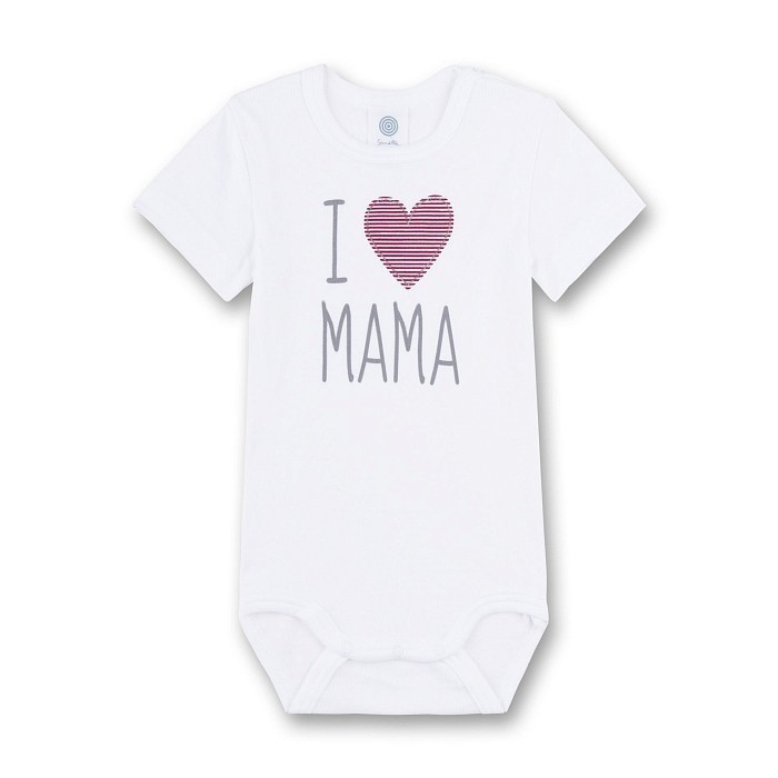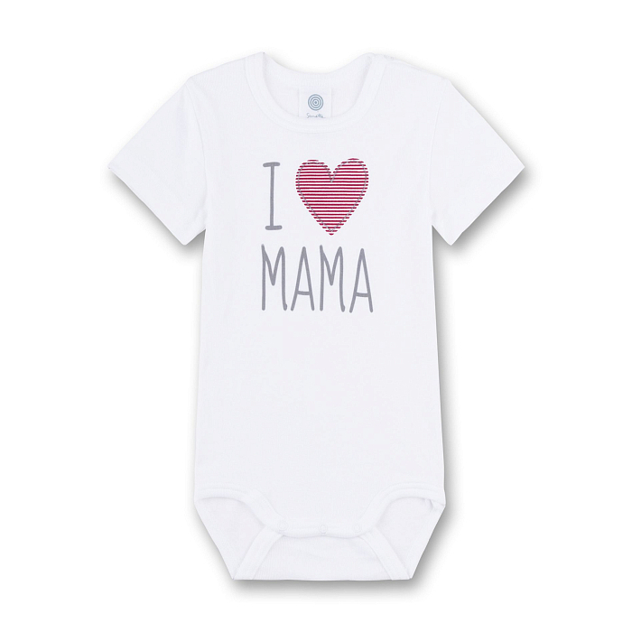Боди Sanetta – это идеальный выбор для маленьких принцесс! Изготовленное из 100% хлопка, оно украшено очаровательным принтом "I Love Mama" с сердцем. Нежная белая основа с красным сердцем и надписью "I Love Mama" создает нежное и в то же время уютное настроение. На фотографии видна аккуратная вышивка сердца и надписи, а также удобная посадка и эластичная резинка на подоле. Качество от бренда Sanetta и внимание к деталям делают эту модель отличным выбором для вашего малыша!