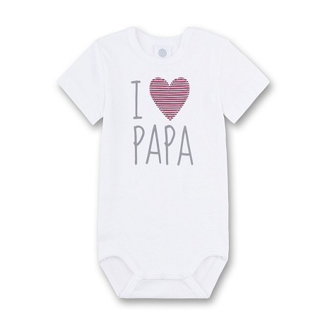 Боди Sanetta – это идеальный вариант для мальчиков 9 месяцев! Изготовленное из 100% хлопка, оно украшено принтом I love Papa с сердцем из красных полос. Белая основа с ярким сердцем и надписью I love Papa создает нежное и в то же время веселое настроение. На фотографии видна аккуратная контрастная окантовка по краю и мягкая текстура ткани. Качество от бренда Sanetta и внимание к деталям делают эту одежду отличным выбором для вашего малыша!