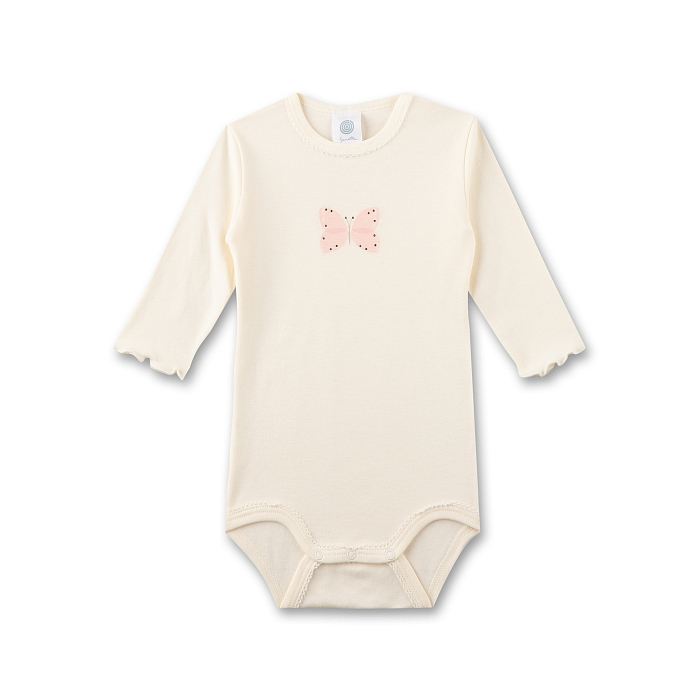 Боди Sanetta – это идеальный выбор для маленьких принцесс! Изготовленное из 100% натурального хлопка, оно украшено очаровательной бабочкой на бежевом фоне. Нежная текстура ткани и удобная посадка делают это боди комфортным и уютным для вашего ребенка. На фотографиях видна аккуратная бежевая основа с розовой бабочкой и мягкими кружевными вставками по краю рукавов и воротника. Качество от бренда Sanetta и внимание к деталям делают эту модель отличным выбором для вашего малыша!