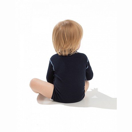 Боди Norveg с длинным рукавом – это идеальный выбор для новорожденных! Изготовленное из 100% шерсти мериносов, оно обеспечивает идеальную терморегуляцию и комфорт. Темно-синий цвет придает боди стиль и элегантность. На фотографиях видны аккуратные светлые контрастные линии по краю и мягкое воротничок. Качество шерсти мериносов гарантирует гипоаллергенность и безопасность для нежной кожи вашего ребенка.