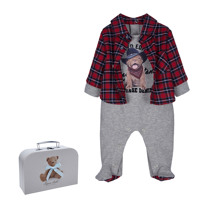 Комбинезон для мальчиков Lapin House – это идеальный выбор для вашего ребенка! Изготовленный из 95% хлопка, 3% эластана и 2% полиамида, он обеспечивает мягкость и комфорт. Комбинезон украшен принтом джинсов и собаки, что делает его стильным и уютным. На фотографиях видна аккуратная окантовка по краю и мягкая текстура ткани. Качество от бренда из Греции и внимание к деталям делают этот комплект отличным выбором для вашего малыша!