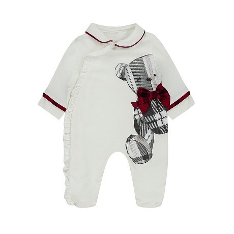 Костюм слитный тр. для девочки Lapin House – это идеальный выбор для маленьких модниц! Изготовленный из 95% хлопка + 5% лайкра и 93% хлопка + 7% лайкра, он украшен очаровательным принтом медведя в клетку. Нежная белая основа с черно-белым медведем и красными акцентами создает уютное и стильное настроение. На фотографиях видна аккуратная красная окантовка по краю и мягкая текстура ткани. Качество от бренда из Греции и внимание к деталям делают этот костюм отличным выбором для вашего малыша!