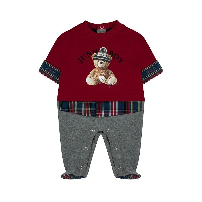 Комбинезон Lapin House – это идеальный выбор для мальчиков! Изготовленный из 96% хлопка и 4% лайкры, он украшен очаровательным принтом медведя и клеткой. Нежная серая основа с ярким красно-синим принтом создает стильный и комфортный наряд для вашего малыша. На фотографиях видна аккуратная клетчатая окантовка по краю рукавов и брючин, а также удобная застежка на пуговицы сзади. Качество от бренда из Греции и внимание к деталям делают этот комбинезон отличным выбором для вашего малыша!