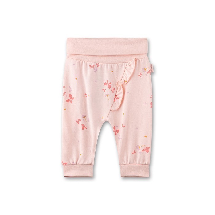 Трикотажные брюки Sanetta Fiftyseven – идеальный выбор для маленьких модниц! Изготовлены из 100% натурального хлопка, они украшены нежными цветами и бабочками на светло-розовом фоне. Красивая цветочная композиция создает нежный и уютный образ. Брюки с эластичной резинкой на талии обеспечивают комфортную посадку и удобство в движении. На фотографиях видна мягкая текстура ткани, рюш на поясе и нежные цветы и бабочки на светло-розовом фоне. Качество от бренда из Германии делает эти брюки отличным выбором для вашего ребенка!