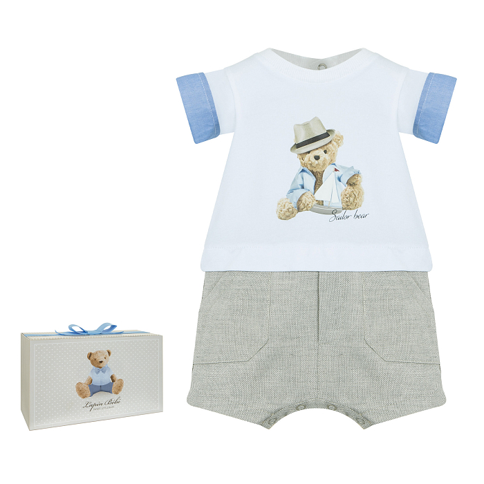 Трикотажный песочник Lapin House – это идеальный выбор для мальчиков! Изготовленный из комбинации хлопка, тактеля, вискозы, полиакрила и лайкры, он украшен очаровательным принтом морского медведя в шляпе и с морской тематикой. Нежная текстура ткани и удобная посадка создают комфорт и уют для вашего малыша. На фотографиях видна аккуратная голубая окантовка рукавов и мягкая текстура ткани. Качество от бренда из Греции и внимание к деталям делают этот песочник отличным выбором для вашего малыша!
