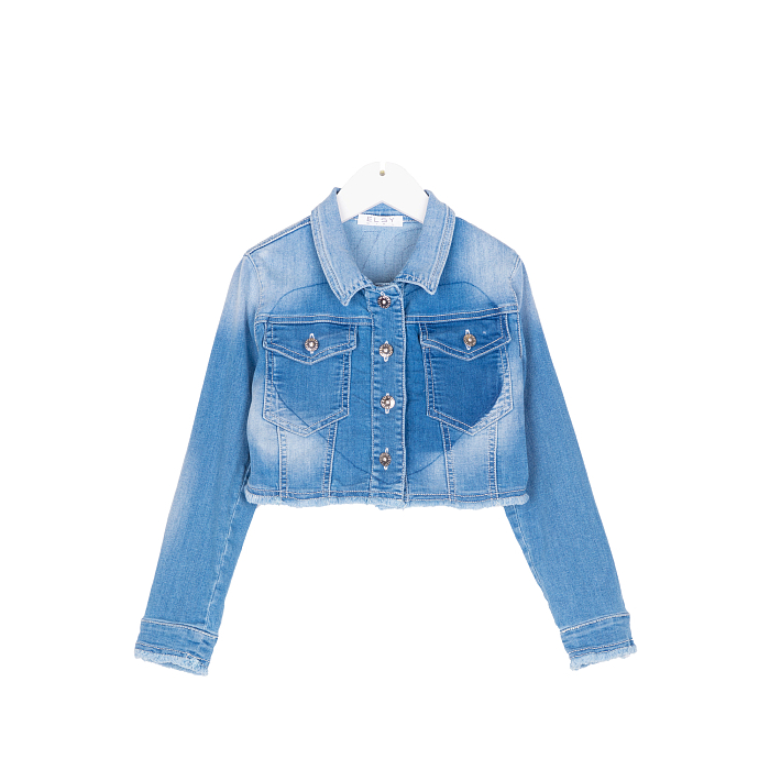 Куртка для девочек Elsy – это идеальный выбор для стильных модниц! Изготовленная из 72% хлопка, 25% полиэстера и 3% эластана, она украшена джинсовым принтом и металлическими пуговицами. Куртка с длинными рукавами и карманами на груди создает неповторимый образ. На фотографии видны металлические пуговицы, джинсовый принт и качественная ткань. Куртка от бренда из Румынии – отличный выбор для вашего ребенка!