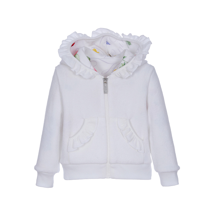 Жакет Lapin House – идеальный выбор для девочек! Двухсторонний жакет с оригинальным дизайном, выполненный из 83% хлопка, 16% полиэстера и 1% эластана. Нежная ткань обеспечивает комфорт и уют, а двухсторонность позволяет использовать его в разных условиях. На изображении видна элегантная белая основа с цветочным принтом на внутренней стороне. Жакет дополнен удобной молнией и карманами с оборками, которые придают ему особый шарм. Качество от бренда Lapin House и внимание к деталям делают этот жакет отличным выбором для вашего ребенка!