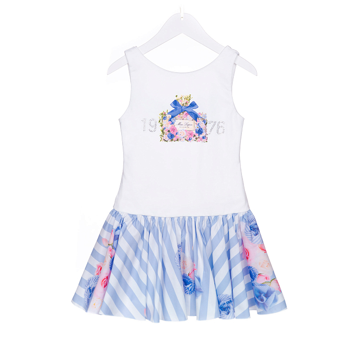 Платье для девочки Lapin House – это идеальный выбор для летних прогулок! Изготовленное из 96% хлопка и 4% эластана, оно украшено цветочным принтом 1976 года. Нежная белая основа с яркими цветами и синим бантиком создает легкое и веселое настроение. На фотографиях видна аккуратная белая окантовка по краю и мягкая текстура ткани. Качество от бренда из Греции и внимание к деталям делают эту модель отличным выбором для вашего ребенка!