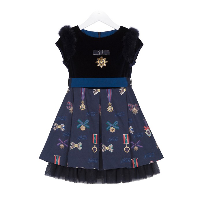Платье Lapin House – это идеальный выбор для девочек! Изготовленное из 87% хлопка, 12% полиэстера и 1% эластана, оно украшено очаровательными медалями и бантовыми узорами. Элегантная черная верхняя часть с воротником из искусственного меха и широкой синей подкладкой создает стильный и комфортный образ. На фотографиях видны яркие медали и банты, а также мягкая текстура ткани. Качество от бренда из Греции и внимание к деталям делают эту модель отличным выбором для вашего ребенка!