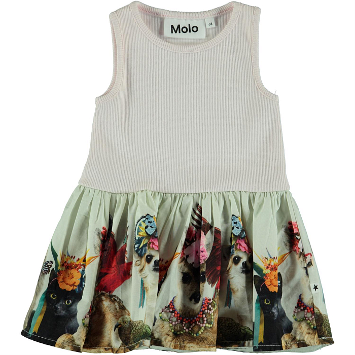 Платье Molo – это идеальный выбор для маленьких модниц! Изготовленное из 96% хлопка и 4% эластана, оно украшено очаровательным принтом с изображением животных и цветов. Нежная ткань и яркие детали создают яркий и веселый образ. На фотографии видна аккуратная вышивка логотипа Molo на спинке и мягкая текстура ткани. Качество от бренда из Индии и внимание к деталям делают эту модель отличным выбором для вашего ребенка!