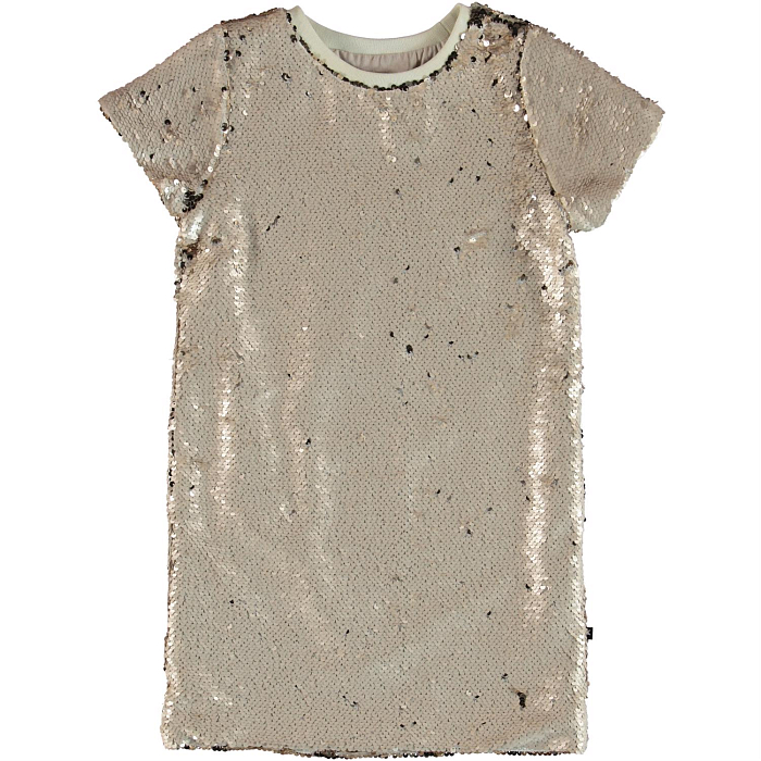 Платье для девочки Molo с блестящими пайетками – идеальный выбор для праздничных дней! Изготовлено из 100% полиэстера с подкладкой из 100% хлопка. Блестящие пайетки создают эффект мерцания, делая платье настоящим украшением. На фото видна блестящая текстура ткани, которая идеально подходит для праздничных нарядов. Качество от китайского бренда Molo и внимание к деталям делают это платье отличным выбором для вашего ребенка!
