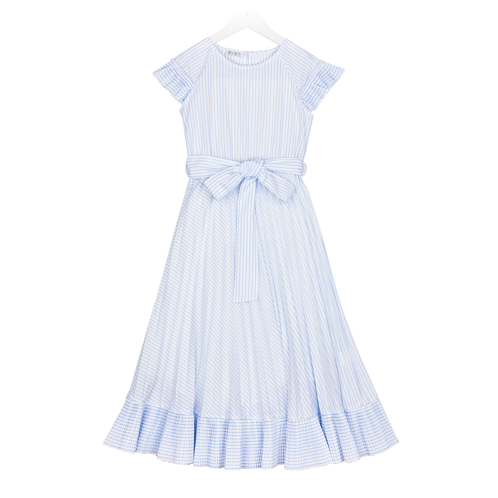 Платье для девочки с голубыми полосками и бантом