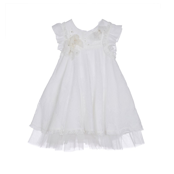 Платье для девочки белое с кружевом и цветами