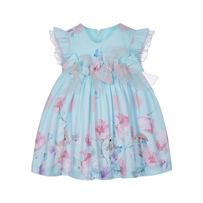 Платье Lapin House – это идеальный выбор для маленьких принцесс! Изготовленное из 81% хлопка, 15% шелка и 4% лайкры, оно дополнено нежным цветочным принтом и бантом на плечах. Нежно-голубой фон с розовыми и белыми цветами и зайчиками создает волшебное настроение. Бантик на плечах придает платью элегантность и шарм. На фотографиях видна аккуратная отделка и мягкая текстура ткани. Качество от бренда из Греции и внимание к деталям делают эту модель отличным выбором для вашего ребенка!