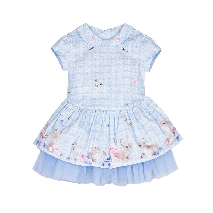 Платье Lapin House – это идеальный выбор для девочек! Изготовленное из 85% полиамида, 14% хлопка и 1% эластана, оно украшено очаровательными зайчиками и цветами. Нежная голубая основа с яркими зайчиками и цветами создает игривое и в то же время уютное настроение. На фотографии видна аккуратная белая окантовка по краю и мягкая текстура ткани. Качество от бренда из Греции и внимание к деталям делают эту одежду отличным выбором для вашего ребенка!
