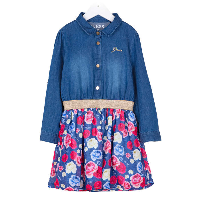 Платье Guess – это идеальный выбор для девочек! Изготовленное из 100% хлопка, 100% полиэстера и с подкладкой из 100% полиэстера, оно украшено очаровательным цветочным принтом на джинсовом верху. Классический джинсовый верх с вышивкой Guess и яркий цветочный принт на юбке создают стильный и уютный образ. На фотографиях видна аккуратная вышивка Guess на джинсовом верху и яркий цветочный принт на юбке. Качество от Китая и внимание к деталям делают эту модель отличным выбором для вашего ребенка!