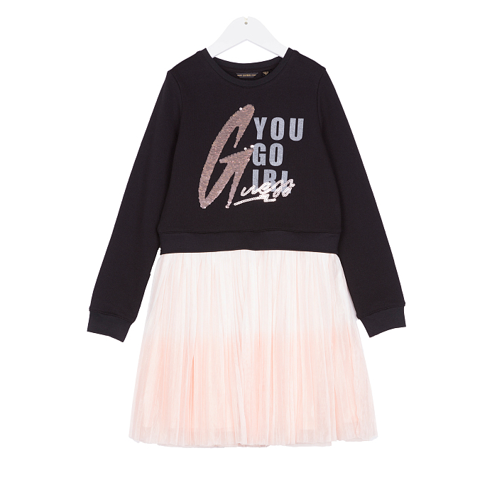 Платье Guess – это идеальный выбор для маленьких модниц! Изготовленное из 100% хлопка, оно украшено блестящими надписями "YOU GO GUESS" и плиссированной юбкой. Нежная черная верхняя часть с блестящими надписями и светлой плиссированной юбкой создает стильный и элегантный образ. На фотографии видна блестящая надпись "YOU GO GUESS" и плиссированная юбка. Качество от бренда США делает это платье отличным выбором для вашего ребенка!
