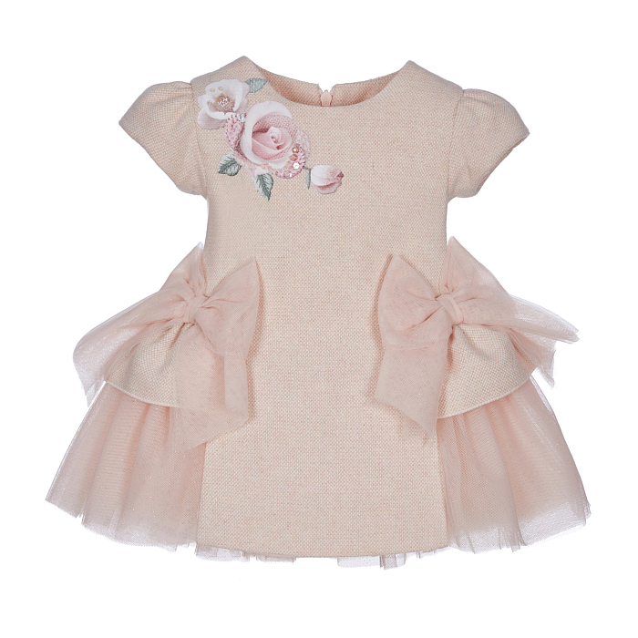 - 🎨 Дизайн: цветочные аппликации с бусинами, крупные банты на рукавах