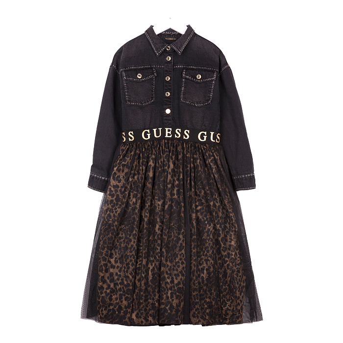 Платье Guess – это идеальный выбор для маленьких модниц! Изготовленное из 100% хлопка, оно сочетает в себе джинсовый верх с леопардовым принтом на юбке. Лаконичный дизайн с небольшими карманами и пуговицами создает элегантный и современный образ. На фотографии видна яркая леопардовая юбка с джинсовым верхом и логотипом Guess на поясе. Качество от бренда Guess и внимание к деталям делают это платье отличным выбором для вашего ребенка!