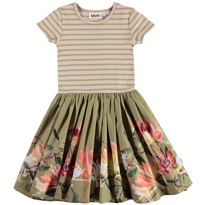 Платье для девочек Molo – это идеальный выбор для весеннего гардероба! Изготовленное из 100% органического хлопка, оно украшено ярким цветочным принтом на зеленом фоне. Контрастные белые и зеленые полосы на лифе создают стильный и элегантный образ. На фотографии видна аккуратная зеленая окантовка по краю и мягкая текстура ткани. Качество от датского бренда и внимание к деталям делают эту модель отличным выбором для вашего ребенка!