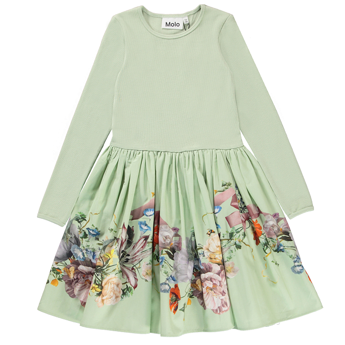 Платье для девочек Molo – это идеальный выбор для маленьких модниц! Изготовленное из 100% органического хлопка с эластаном, оно украшено ярким цветочным принтом. Нежно-зеленый тон основы с разноцветными цветами создает яркий и веселый образ. На фотографии видна аккуратная резинка на горловине и эластичная ткань, которая обеспечивает комфортную посадку. Качество от бренда из Дании делает это платье отличным выбором для вашего ребенка!