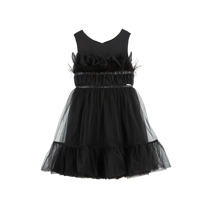 Платье Guess для девочек – идеальный выбор для особенных случаев! Изготовленное из 100% полиэстера и полиамида с подкладкой из 100% хлопка, оно украшено пышной юбкой и перьями. Черный цвет создает стильный и элегантный образ, а пышная юбка придает платью нежность и изысканность. На фотографии видна пышная юбка с перьями и эластичная резинка на талии. Качество от американского бренда Guess делает это платье отличным выбором для вашего ребенка!