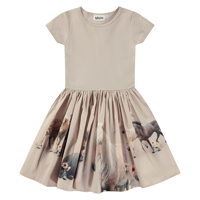 Платье для девочки Molo – это идеальный выбор для маленьких лошадиных фанатов! Изготовленное из 100% натурального хлопка с добавлением эластана, оно украшено очаровательными изображениями лошадей и цветов на светло-бежевом фоне. Нежная ткань с яркими принтами создает легкое и в то же время уютное настроение. На фотографиях видны аккуратные детали платья, такие как эластичная резинка на спинке и мягкая текстура ткани. Качество от бренда из Дании и внимание к деталям делают эту модель отличным выбором для вашего ребенка!