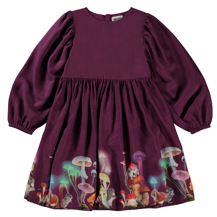 Платье Molo – это идеальный выбор для маленьких принцесс! Изготовленное из 100% вискозы, оно украшено очаровательными грибами, яркими животными и волшебными светящимися элементами на фиолетовом фоне. Нежная вискоза с яркими принтами создает волшебное настроение и радует глаз. На фотографиях видны аккуратные рукава с эластичной резинкой, удобная посадка и мягкая текстура ткани. Качество от бренда из Дании и внимание к деталям делают эту модель отличным выбором для вашего ребенка!