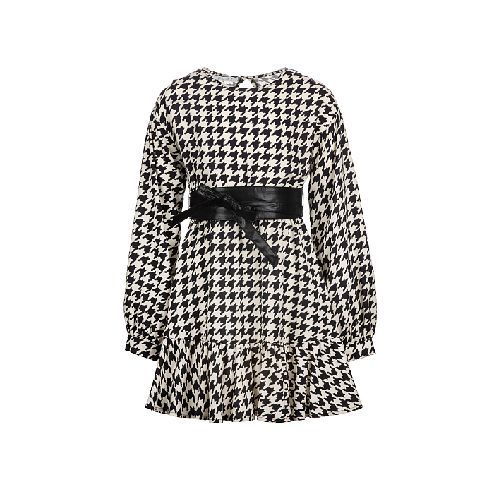 Платье для девочек с принтом в клетку и черным поясом