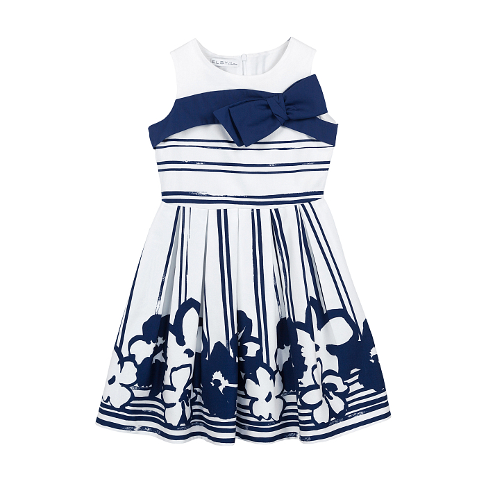Платье тр. для девочки Elsy – это идеальный выбор для маленьких модниц! Изготовленное из 97% хлопка и 3% эластана, оно украшено очаровательным цветочным принтом и элегантным бантом на талии. Белый фон с синими цветами и розами создает нежное и стильное настроение. На фотографиях видна аккуратная белая окантовка по краю и мягкая текстура ткани. Качество от бренда из Албании и внимание к деталям делают эту модель отличным выбором для вашего ребенка!