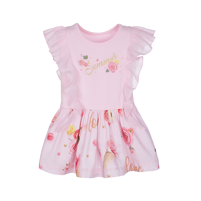 Платье для девочек Lapin House – это идеальный выбор для теплых дней! Изготовленное из 96% хлопка и 4% эластана, оно украшено очаровательными летними цветами и надписью Summer. Нежный розовый цвет с яркими розами, желтыми цветами и золотыми буквами создает легкое и радостное настроение. На фотографии видна удобная посадка с воланами на рукавах и мягкими басками. Качество от бренда из Греции и внимание к деталям делают эту модель отличным выбором для вашего ребенка!